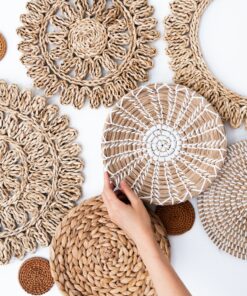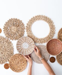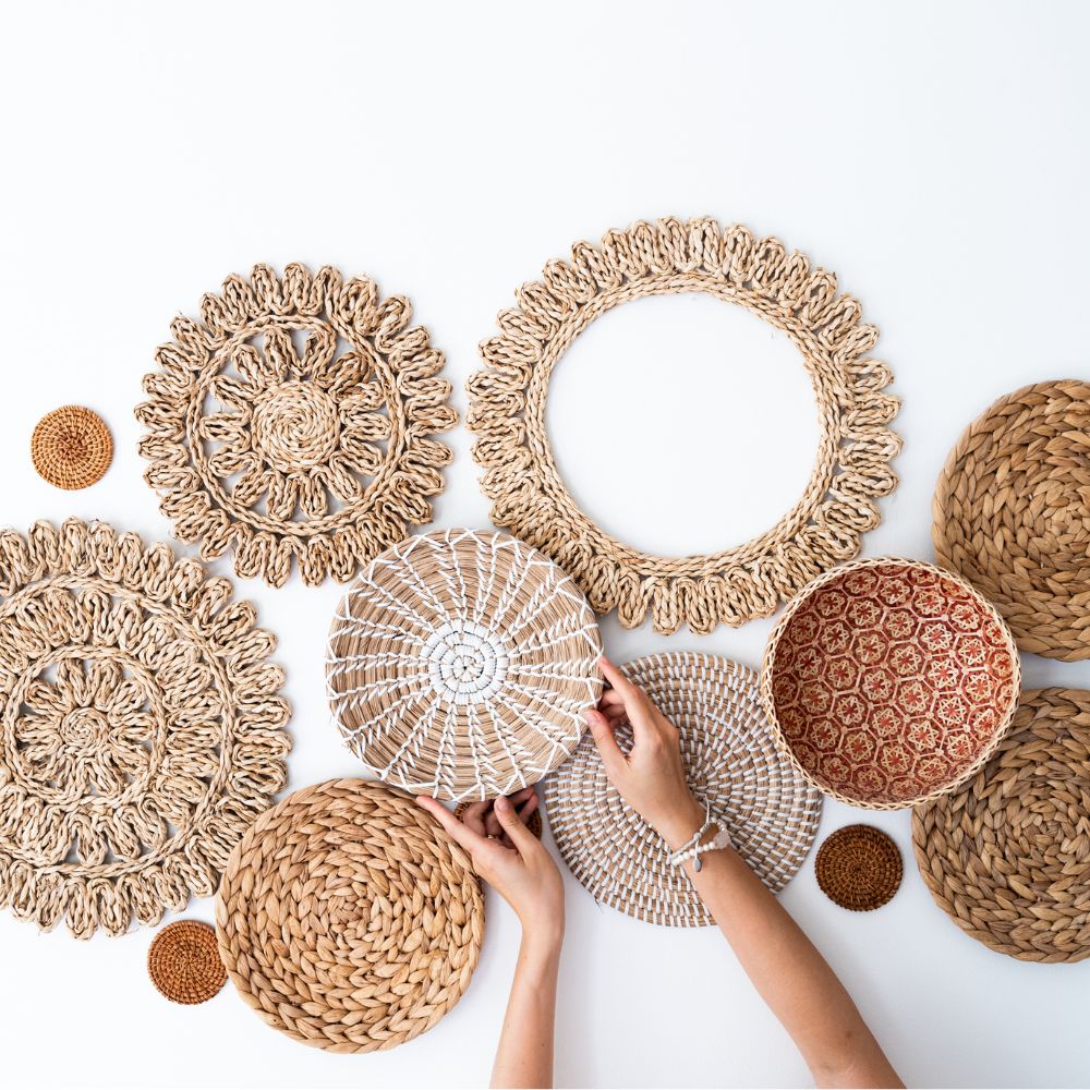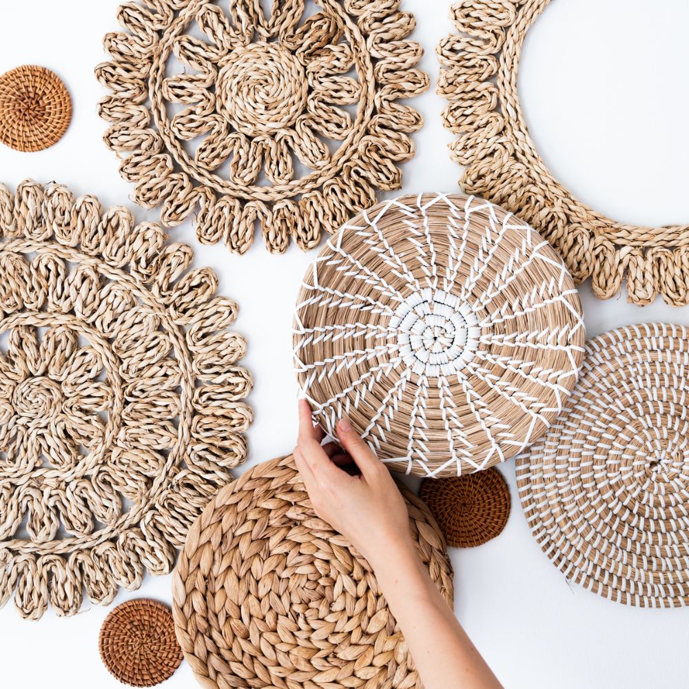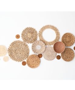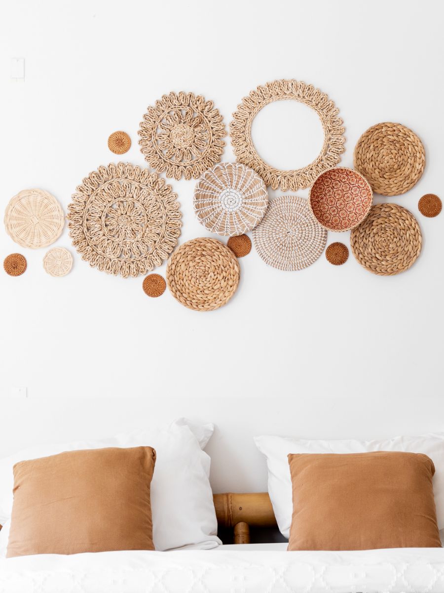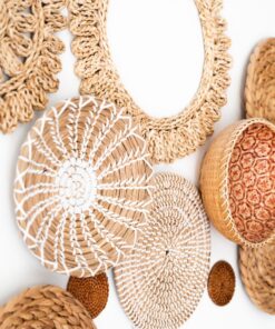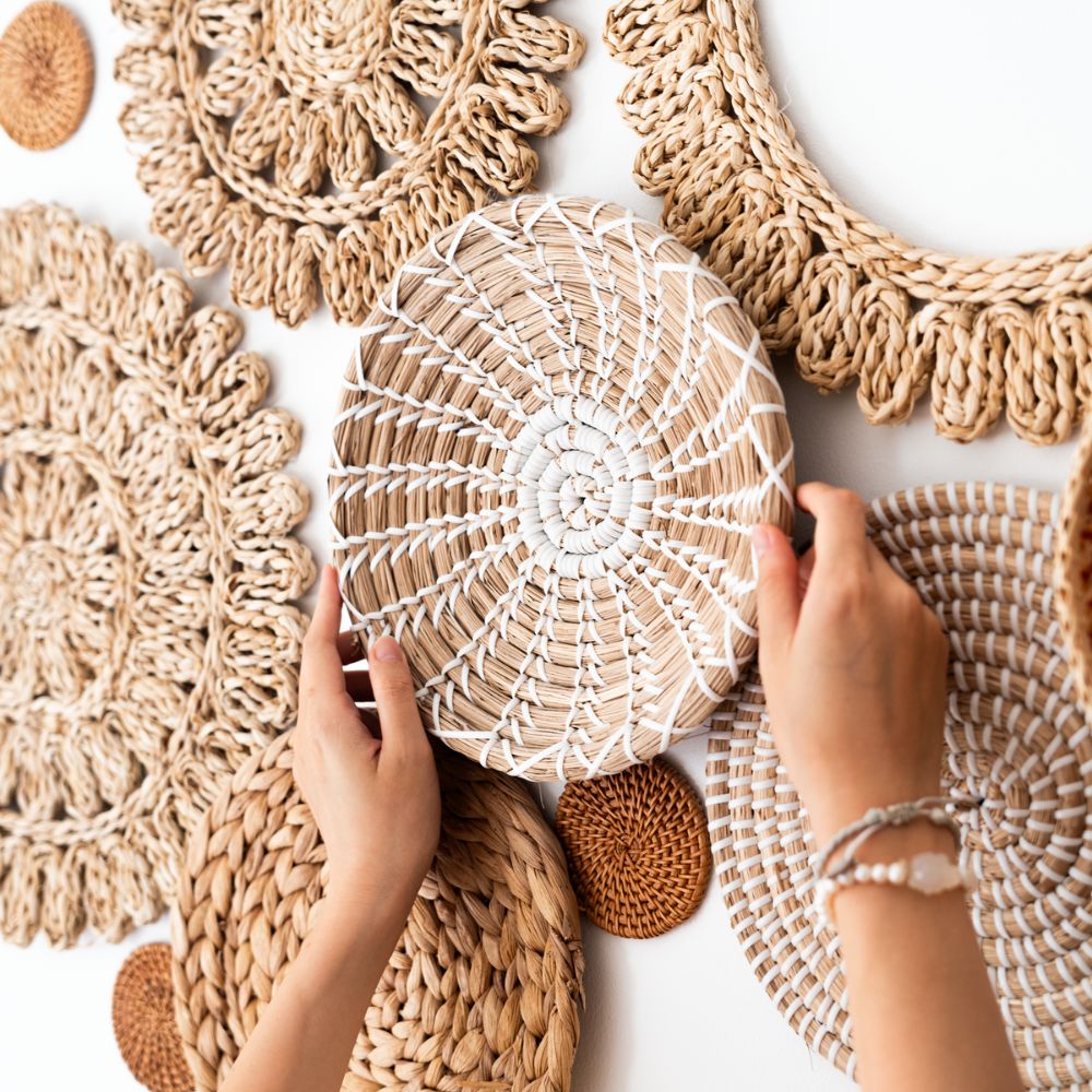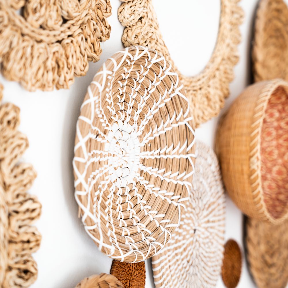 17 handgefertigte Wandkörbe aus Naturmaterialien. Größen: 8–38 cm. Ideal für Boho & Japandi-Stil